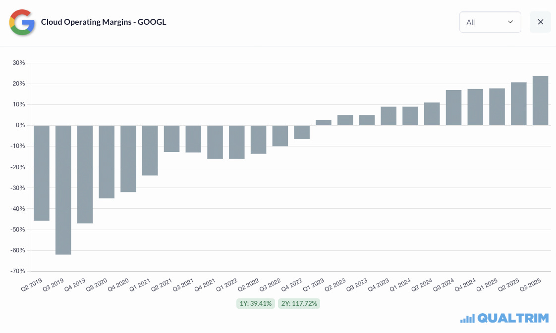 While not a perfect comparison due to having different business models, Google only just recently hit 20% operating margins on their cloud business, and reached positive margins 3 years ago. So management’s guidance is very ambitious.