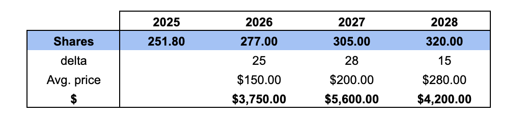 As mentioned before, we also assume the share count expands to ~320 million shares by 2028.